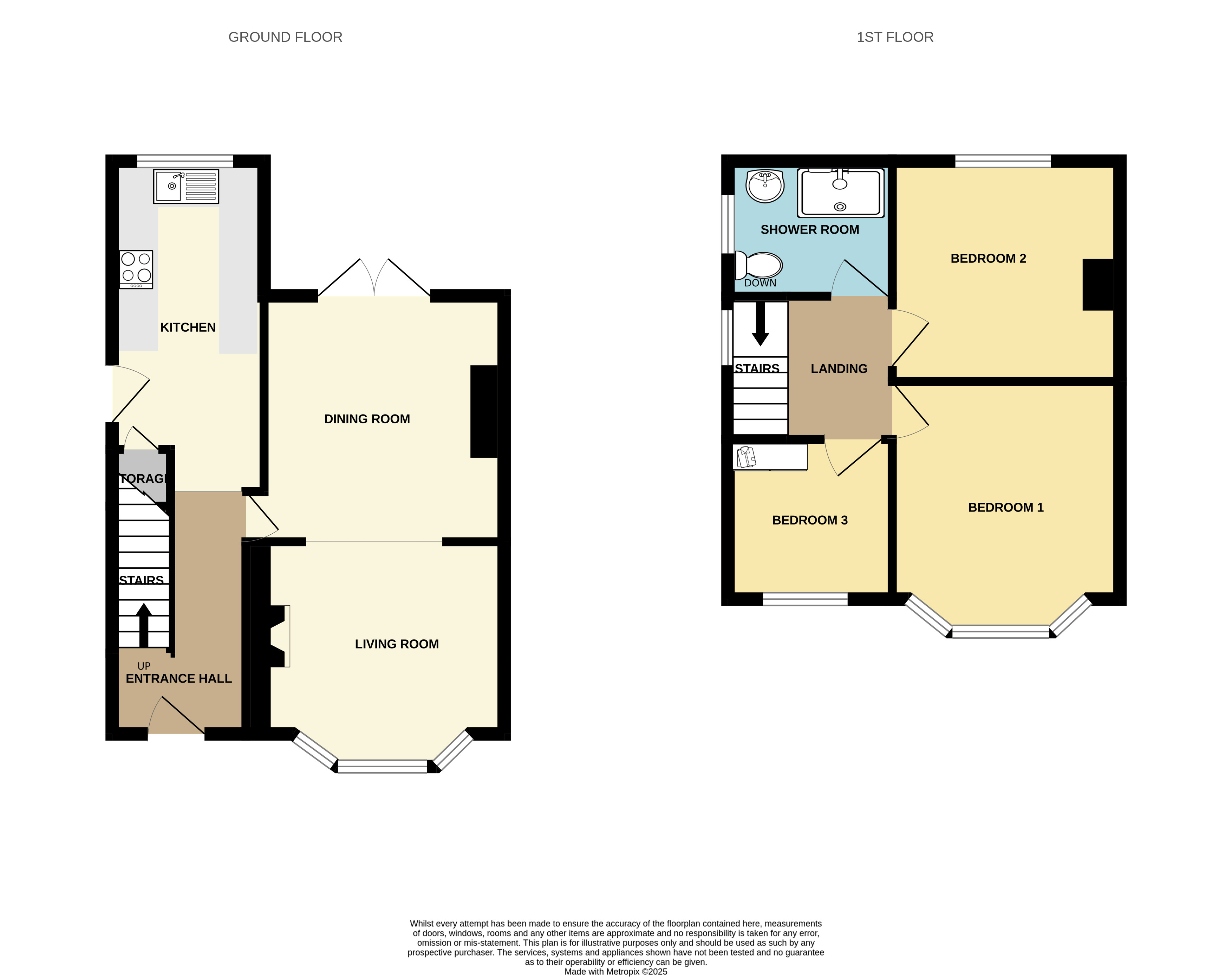 Upstairs, the landing is bright thanks to a window, it leads to three bedrooms. The main bedroom is generously sized and features a second bay window, while the second bedroom can also accommodate a double bed and furniture. The third bedroom is a comfortable single - ideal as a child’s bedroom, office or guest space. The family bathroom is modern and has been updated to include a large walk-in shower, offering a sleek and contemporary feel. There is also a boarded loft with a drop-down ladder, providing excellent additional storage or potential for further use.