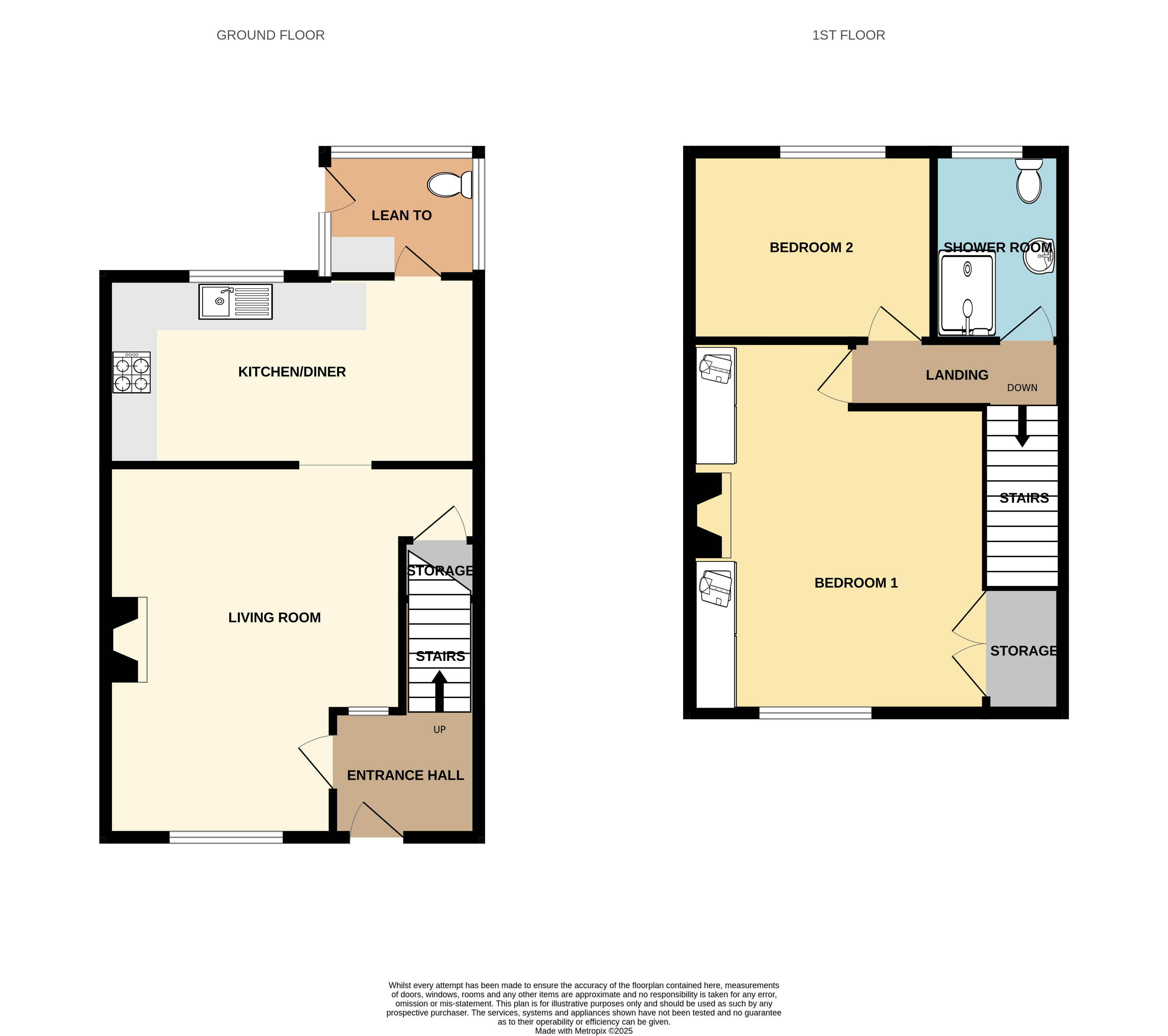 Upstairs, the property offers two double bedrooms. The front bedroom is impressively large, complete with fitted wardrobes and a charming feature fireplace. Its size presents the potential to divide it into two smaller bedrooms, subject to installing a door from the landing and adding an extra window. The second double bedroom overlooks the rear garden and features wooden beams and wooden flooring that add warmth and character.