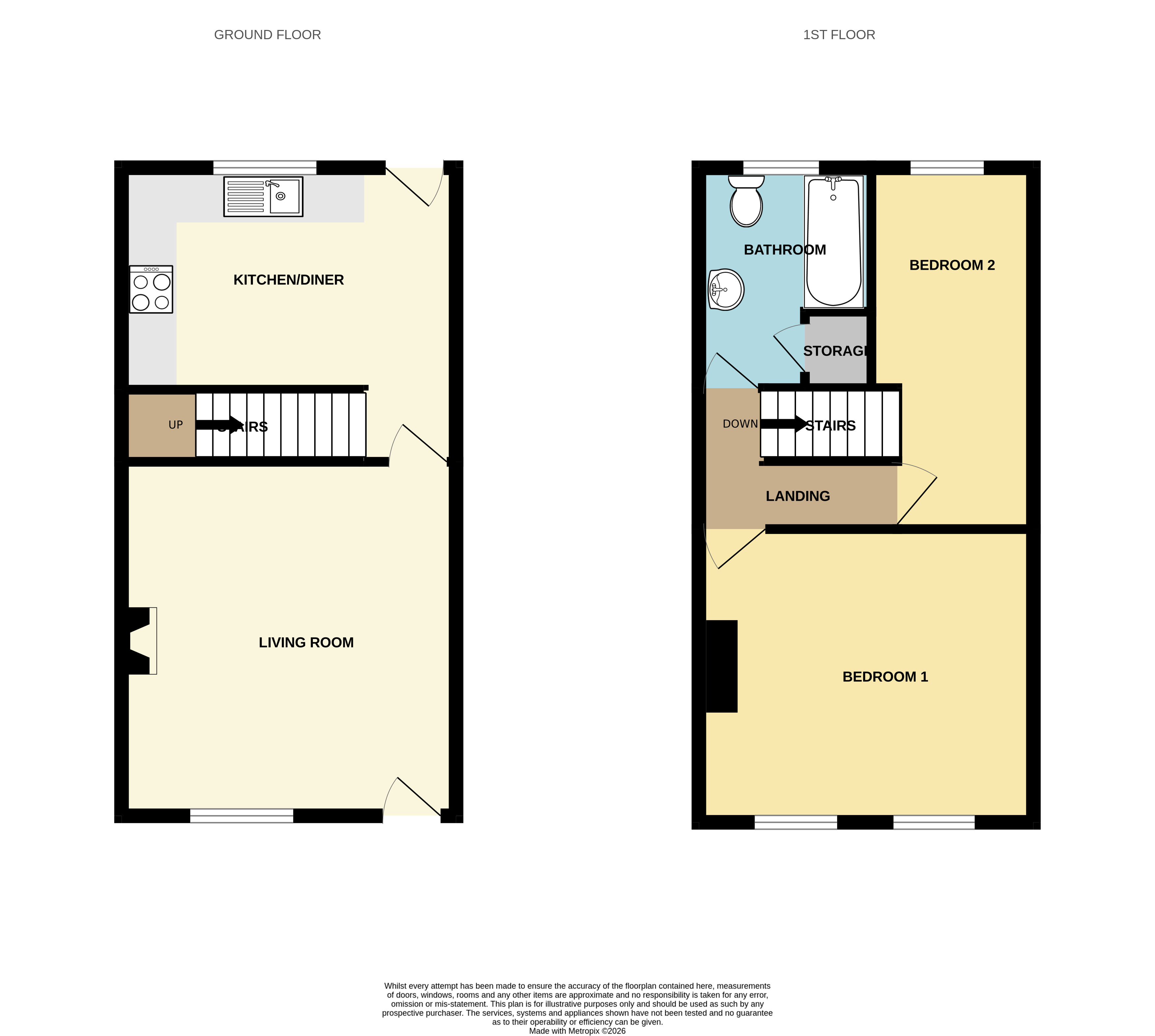 Upstairs there are two bedrooms, a large double bedroom to the front of the property and a single bedroom to the rear. The property also features a modern family bathroom fitted with WC, sink and bath with shower over, there is a useful storage cupboard which enhances the space.