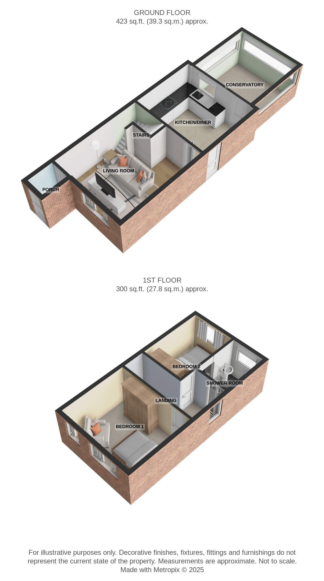 Upstairs, the property continues to impress with two generous double bedrooms - each offering enough space for beds and storage furniture. The upper floor also features a stylish, modern shower room with wall and floor tiling, providing a sleek and easy-to-clean environment. The overall layout is well-balanced and ideal for a couple or small family.