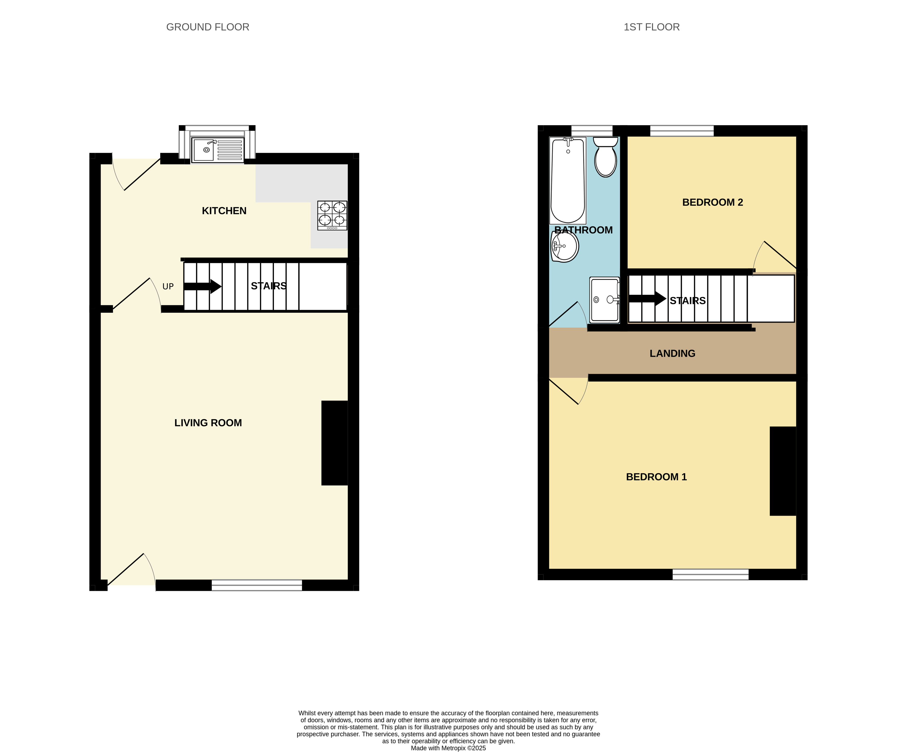 Inside, the property boasts a bright and airy interior with modern, neutral décor throughout. The living room is full of natural light, stylishly finished with a decorative fireplace which has been converted into a feature wall with beautiful tiling and a natural wooden mantel. This flows seamlessly into a modern kitchen area, which features a charming bay window above the sink overlooking the rear yard, letting in plenty of natural light. There is also space to add a small dining table or breakfast bar, making it a versatile and functional area for cooking and casual dining. Upstairs, you'll find two well-proportioned bedrooms: one spacious double and one single, perfect for use as a guest room, home office or dressing room. The bathroom is stylish and contemporary, complete with a separate shower cubicle, ideal for those seeking practicality.